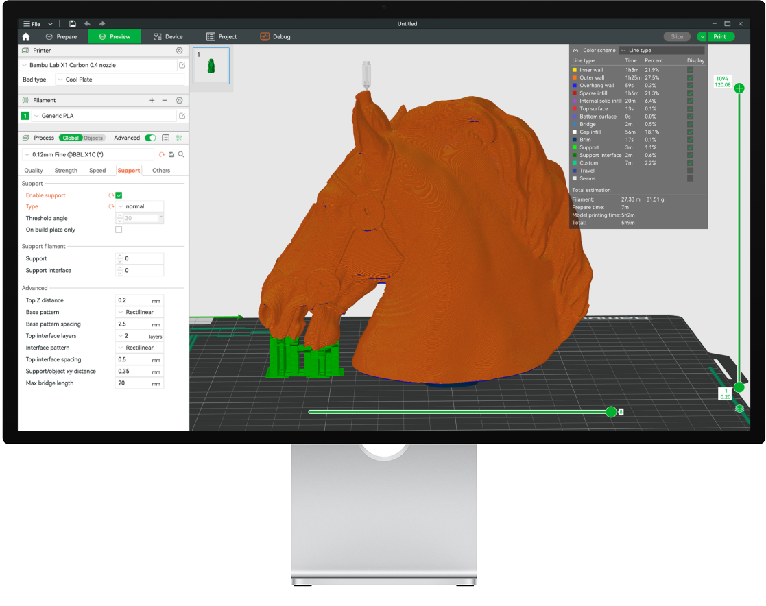 Достичь высокой скорости печати при сохранении отличного качества — непростая задача, но Bambu Studio справляется с ней.
