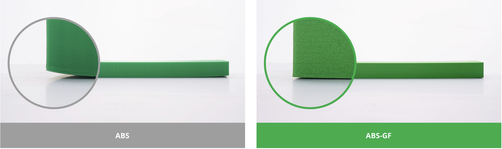 ABS-GF превосходит обычный ABS по прочности и жёсткости, что делает его идеальным для деталей, несущих нагрузку и устойчивых к изгибу.