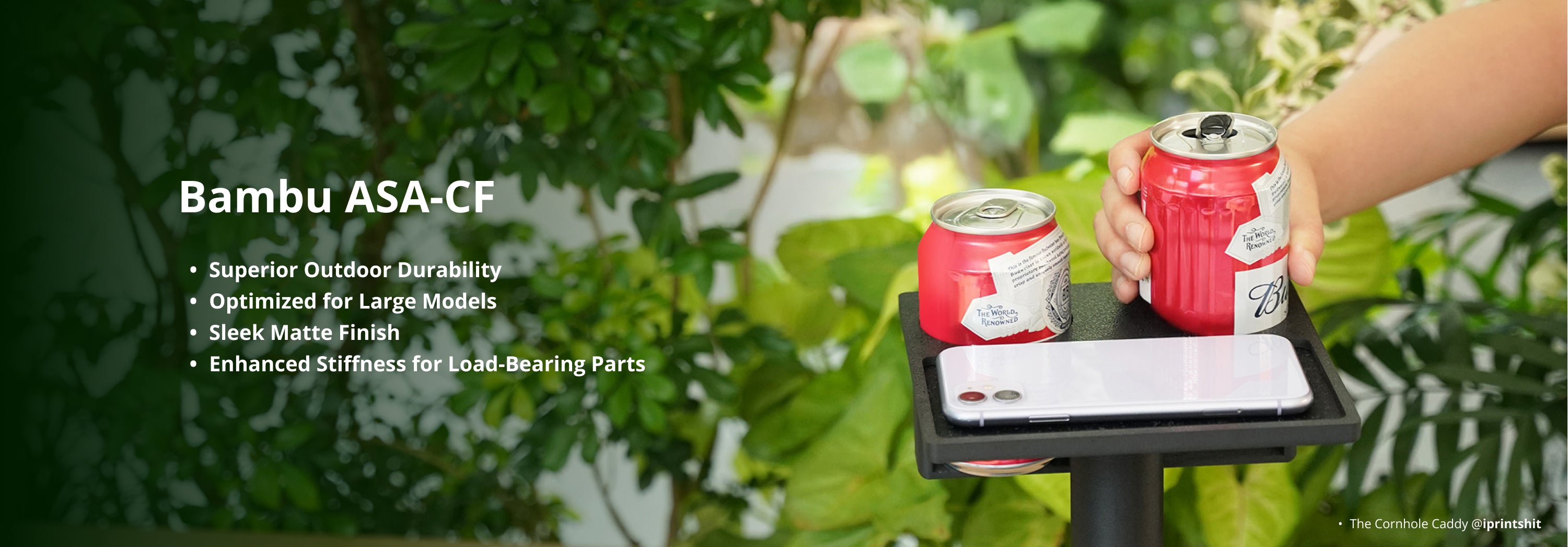 Bambu ASA-CF выделяется как один из лучших материалов для использования на улице, обладая отличной устойчивостью к суровым погодным условиям и ультрафиолету. Усиленный углеродным волокном, он идеально подходит для создания прочных садовых инструментов, уличной мебели и защитных корпусов для электроники.
