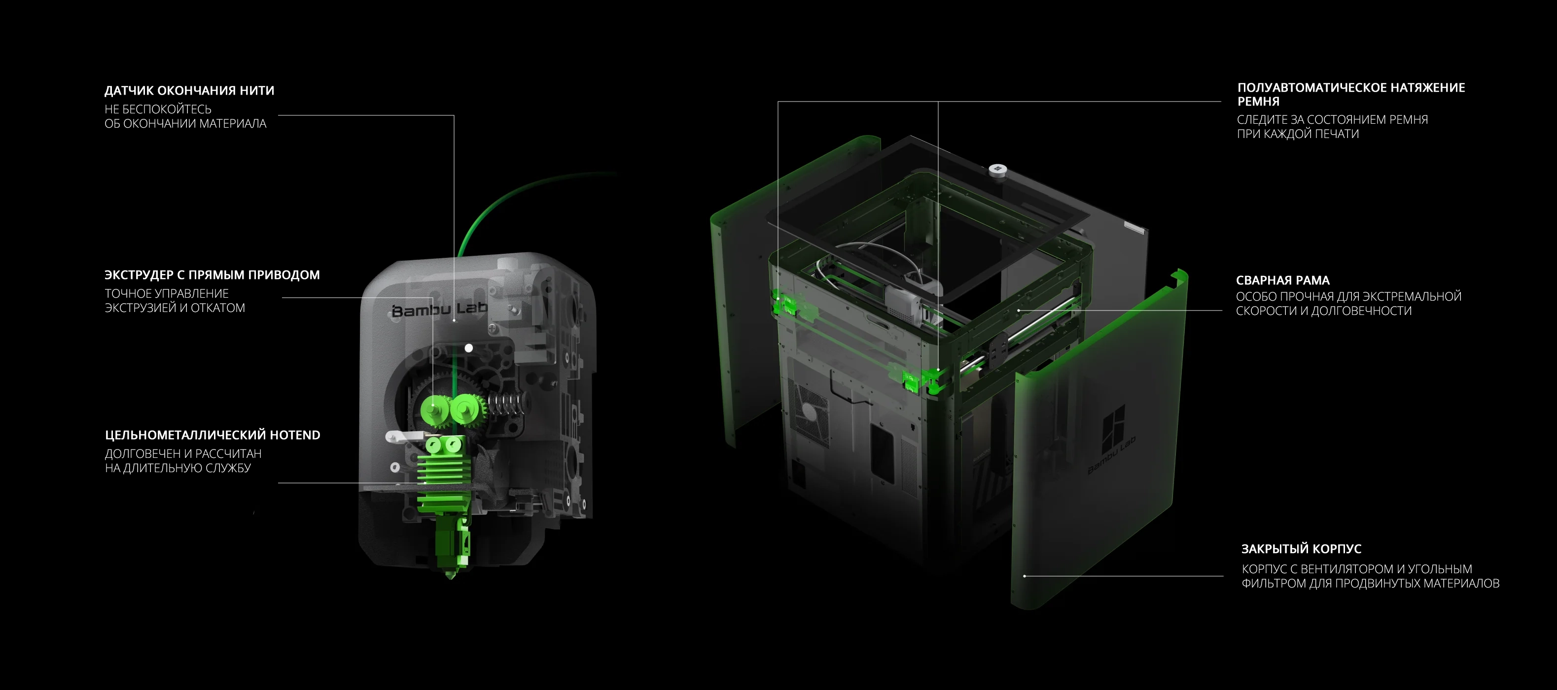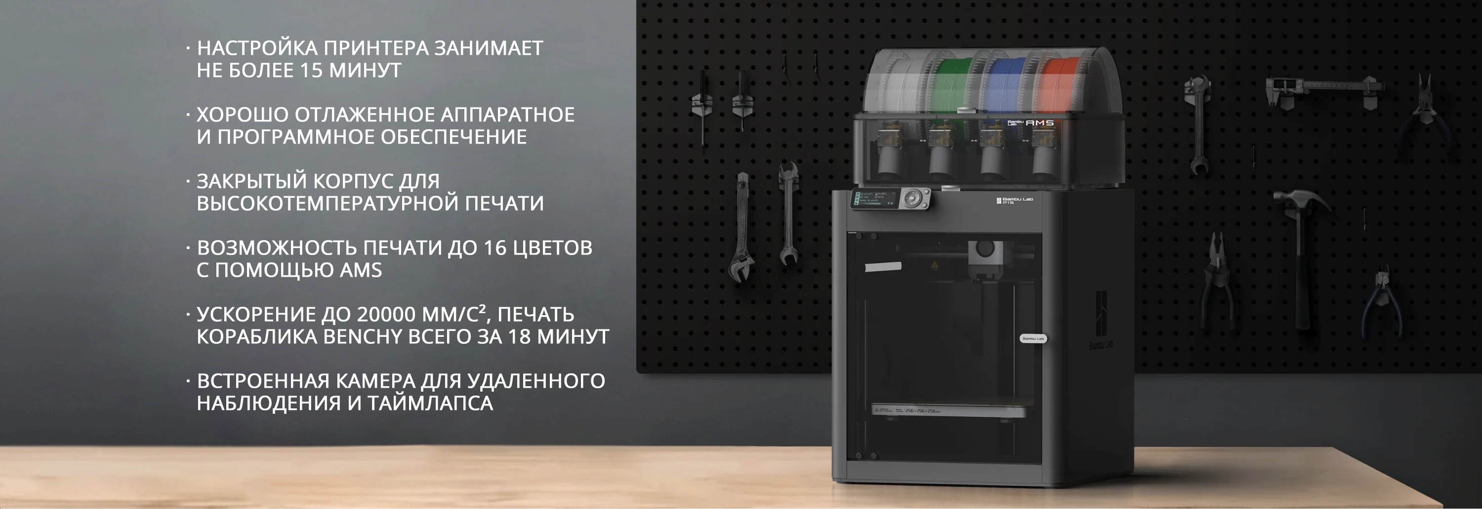 Просто работает сразу после распаковки. Вам не нужно ничего настраивать — просто нажмите «Печать», и принтер сам выполнит все калибровки (автоматическое выравнивание стола, компенсацию вибраций). Наслаждайтесь стабильной печатью без проблем с вашим P1S.