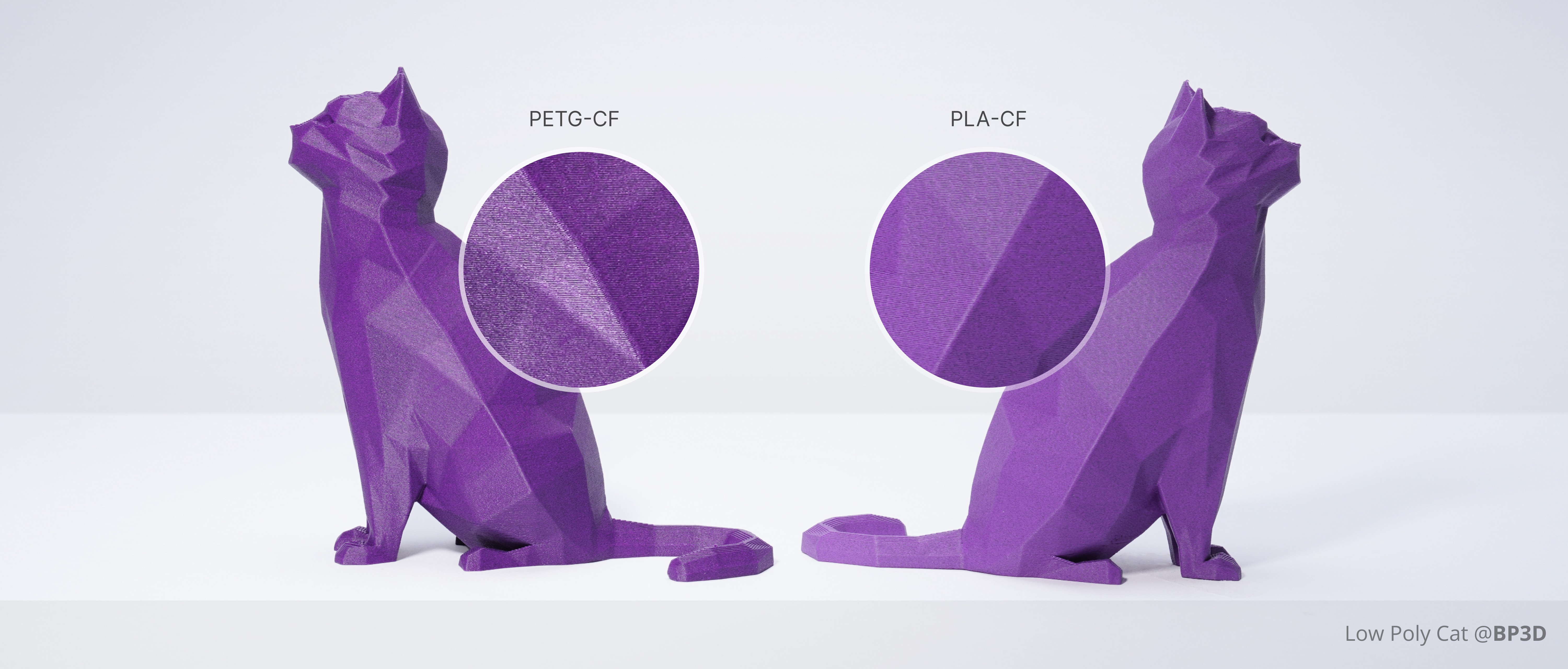 Bambu PETG-CF имеет текстуру углеродного волокна, которая скрывает линии слоев, а поверхность более глянцевая, чем у PLA-CF, делая материал одновременно привлекательным и функциональным.