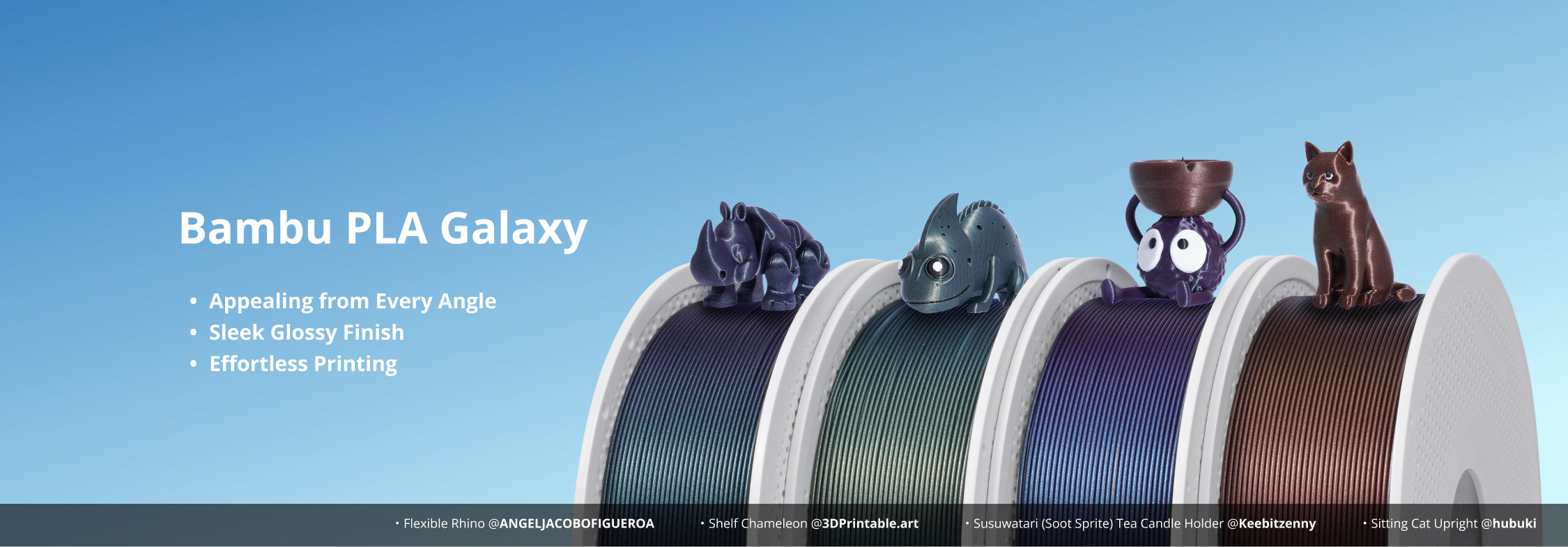 Bambu PLA Galaxy поднимет ваши проекты на новый уровень блеска и утончённости.