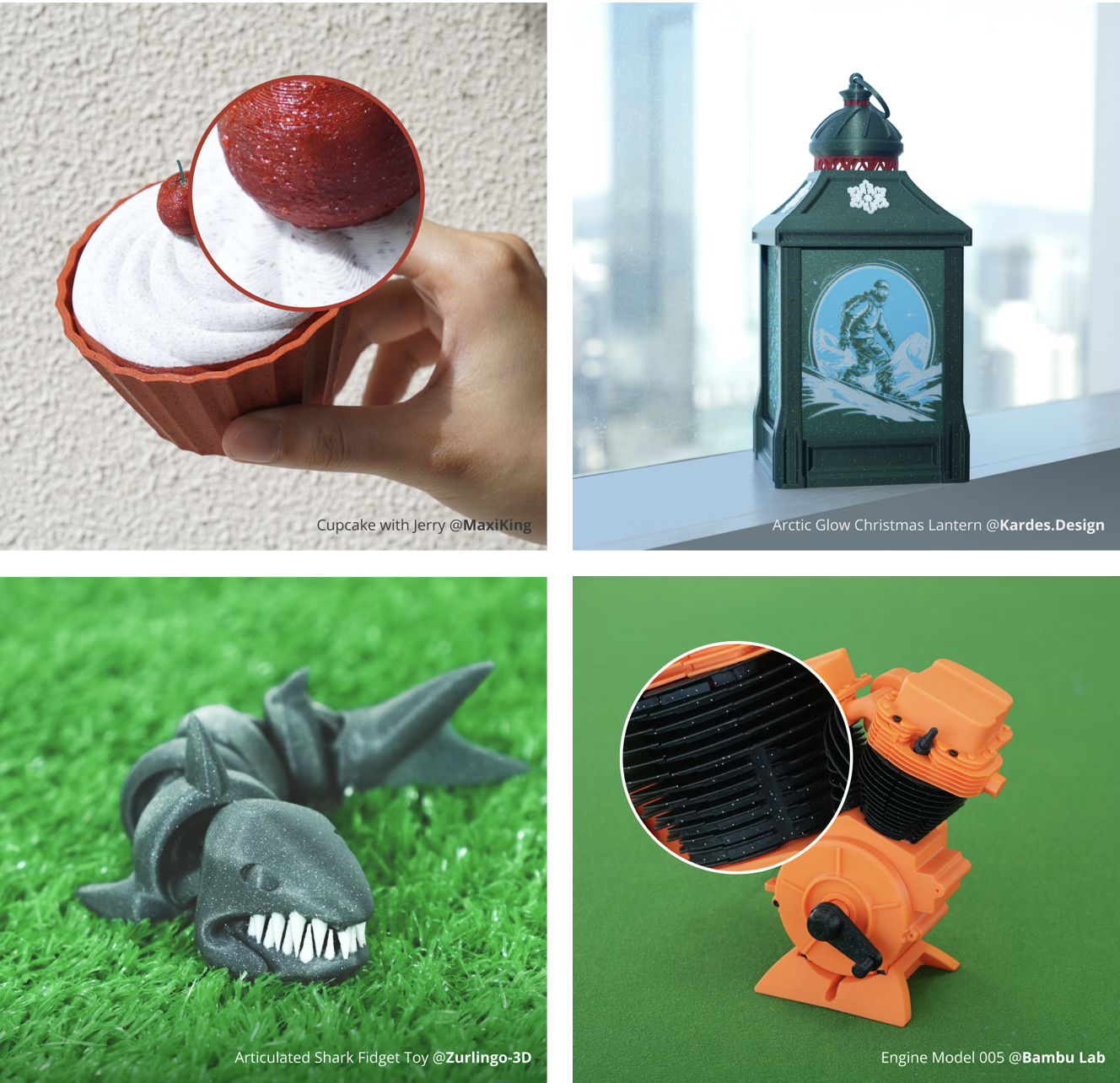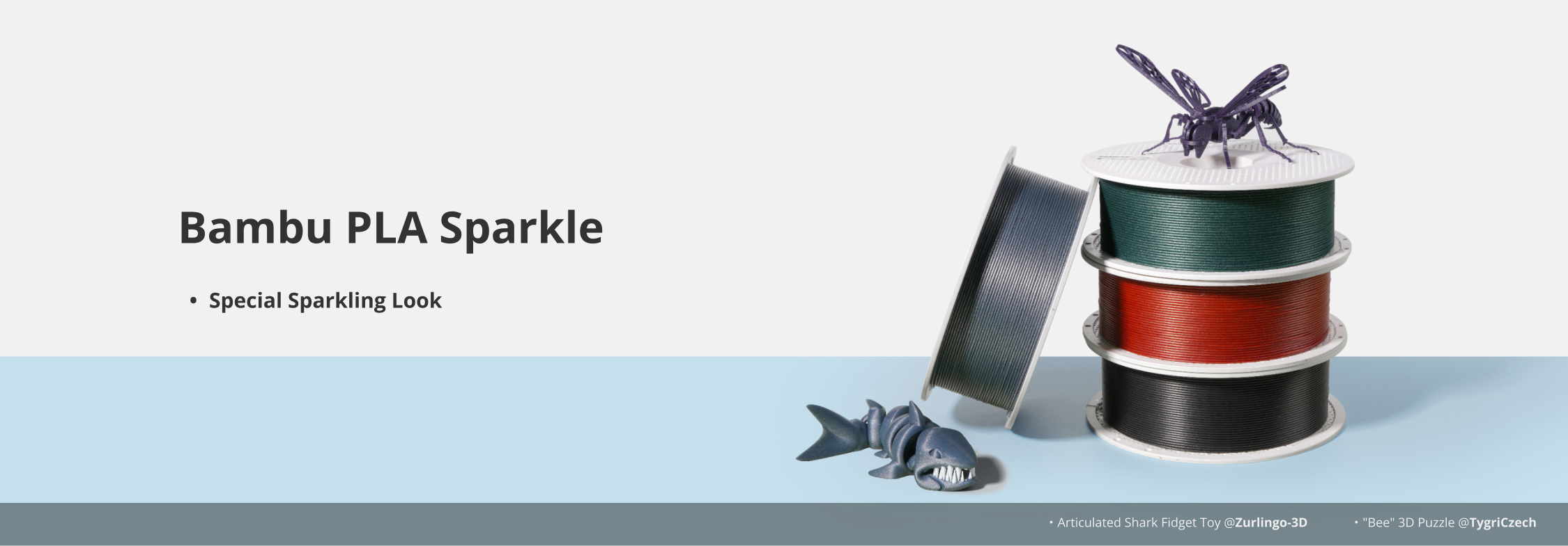 Bambu PLA Sparkle — это филамент нового уровня, который сочетает прочность и эффектный блеск. В его составе присутствуют металлические частицы, создающие особый сияющий эффект на ваших моделях. Изделия выглядят ярко и празднично, выделяясь среди обычных PLA-принтов. Bambu PLA Sparkle идеально подходит для декоративных объектов, сувениров, фигурок и любых проектов, где важен эффект блеска.