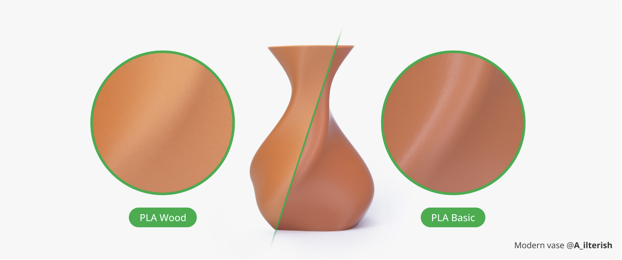 Матовая отделка Bambu PLA Wood эффективно скрывает линии слоёв и обеспечивает гладкую, аккуратную поверхность. Результат — изделия с естественным, «живым» видом, будто выточенные из цельного куска дерева.